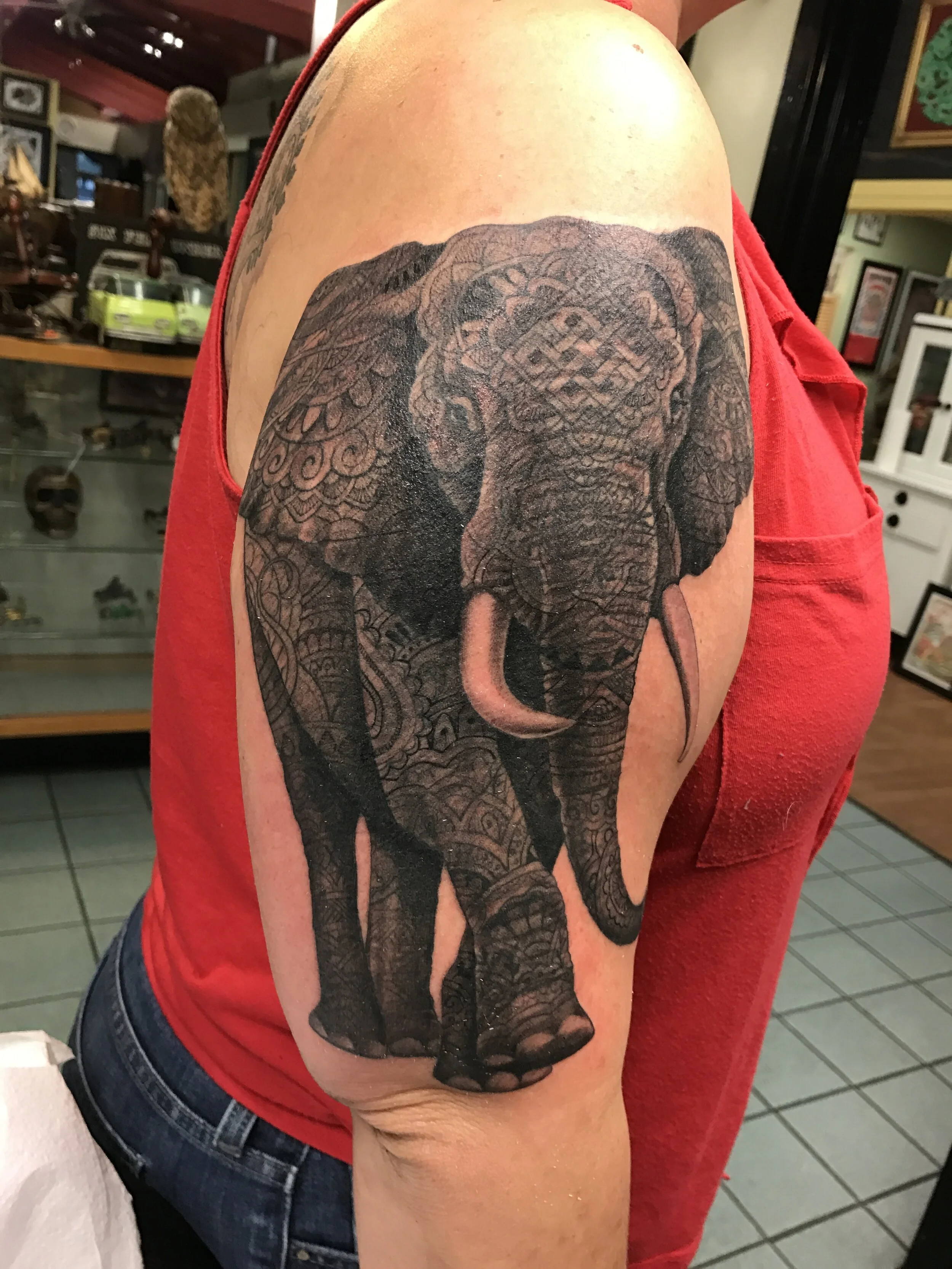 It was 1989, and upon his return from attending a tattoo convention in New Orleans, Corey got a break from the one and only Jack Rudy, who gave him a job at Good Time Charlie’s Tattooland in Anaheim, California. Good Time Charlie’s was an institution in the tattoo world. Artists such as Mark Mahoney, Freddy Negrete, and Dick Warsocki had previously worked at Good Time Charlie’s, and it was there that Corey got the chance to work with Jack Rudy and Mike Brown—artists whom Corey collectively refers to as 'the Kings of Black and Grey.' Corey considers himself fortunate to have learned some important technical skills from Brown and to have seen masterpieces created by the hand of Jack Rudy, his friend and mentor.